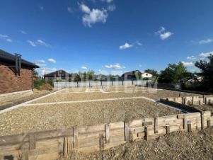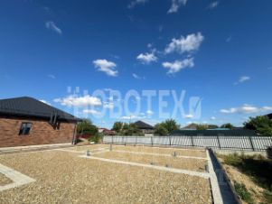 Площадь участка — 6,63 сотки, фасад — 20 метров. Участок ровный, правильной формы, выровнен гравием, уровень земли поднят выше уровня улицы, что обеспечивает отличную защиту от подтоплений. На территории уже залит фундамент под будущий дом, проект и планировка которого прилагаются. Все коммуникации подключены: вода из собственной скважины с разводкой по участку, септик и возможность подключения к городской канализации, электричество подведено. Газ проходит по меже с соседним участком на улице Запорожской.