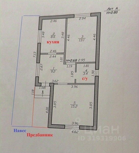 В доме две изолированных комнаты 13 и 15,2 кв м, кухня 8,6 кв м, с/у совмещен.