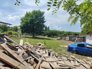 Участок правильной прямоугольной формы с фасадом 17 метров. Практически центр хутора, со всех сторон построены дома и живут соседи.