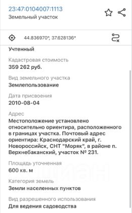 Кадастровый номер участка 23:47:0104007:*** указал продавец