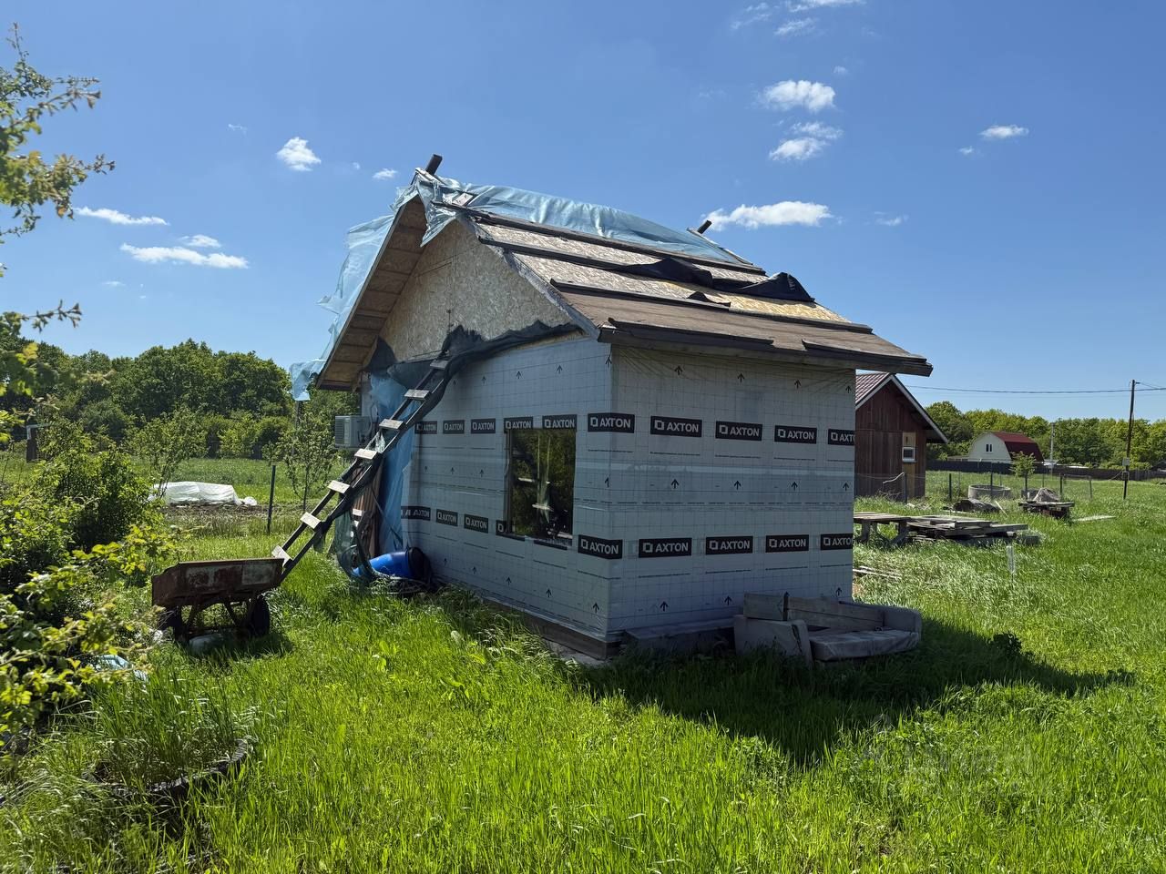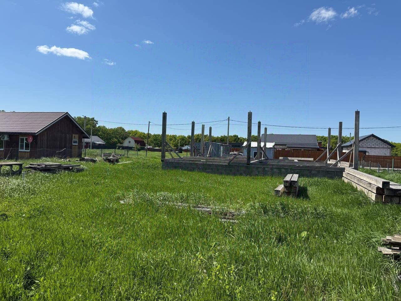 На участке возведен фундамент с цоколем 11,5*11,5 м., каркас бани 3*6 м.