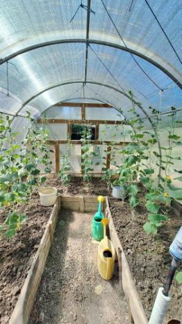 На территории различные плодовые деревья, виноград. Две теплицы. Собственный выход к зарыбленному пруду.