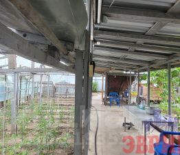 На участке есть теплица, хозпостройки; посажены плодовые деревья: виноград, инжир, яблоня, вишня.