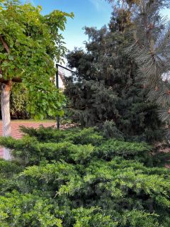 Двор вымощен плиткой и украшен прудом с рыбами и фонтаном. На территории расположены беседки, летняя кухня, навес на два автомобиля, а также место для хранения инвентаря. Дом строился и дорабатывался с особым вниманием к деталям, что делает его по-настоящему уникальным предложением.