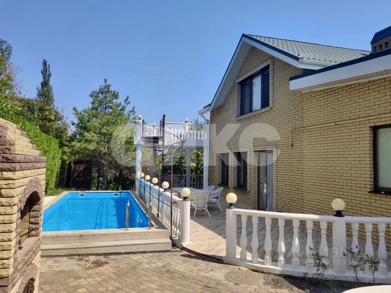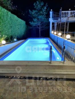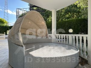 Также во дворе есть зона барбекю с мангалом, восьмиметровый бассейн с подсветкой и просторная терраса с шезлонгами и мебелью из ротанга.