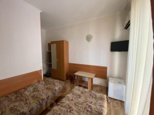 15 номеров + 100 м2 площадь дома. В каждом номере свой сан узел, сплит система, телевизор и холодильник.