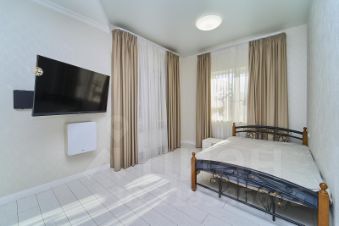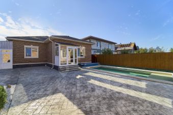 Второй дом-гостевой площадью 98 кв. м., в одном уровне, в предчистовой отделке: большая кухня-гостиная 30 кв. м, комната, баня, душевая и санузел, также крытая беседка и кладовая. В доме по всему периметру теплые полы.