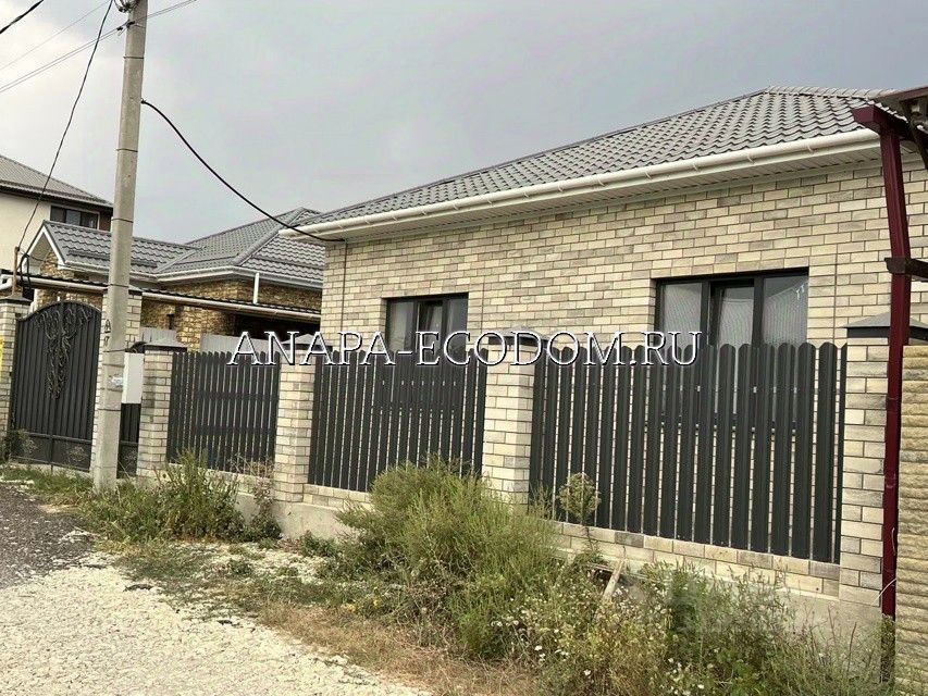 Продам новый кирпичный дом в ближайшем пригороде Анапы, до города 3 км. Дом монолит кирпич, в доме почти сделан ремонт . Три спальни, большая кухня гостиная с выходом на террасу. Вся электро проводка медь, силовой кабель.Стяжка полов под ламинат, стены белые под обои, потолки гипсокартон. Крыша метало черепица, утеплитель в три слоя. Участок ровный, площадь 4 сотки официально, а по факту 5 соток. Забор по периметру, ленточный фундамент, обшит проф настилом, фасад кирпичные колонны. Коммуникации: свет 15 кВт, вода центральная, септик , Инфраструктура развитая, магазины, остановка общественного транспорта .