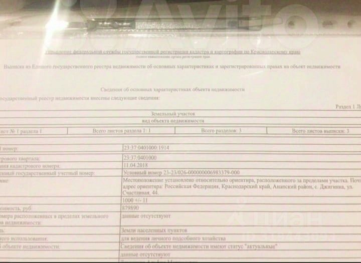 Кадастровый номер участка 23:37:0401000:*** указал продавец