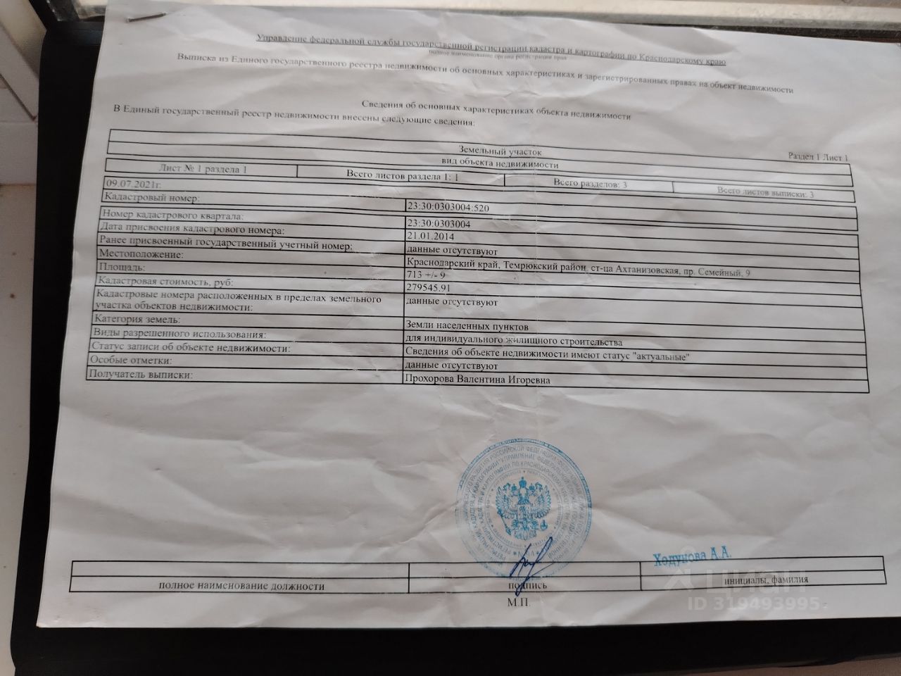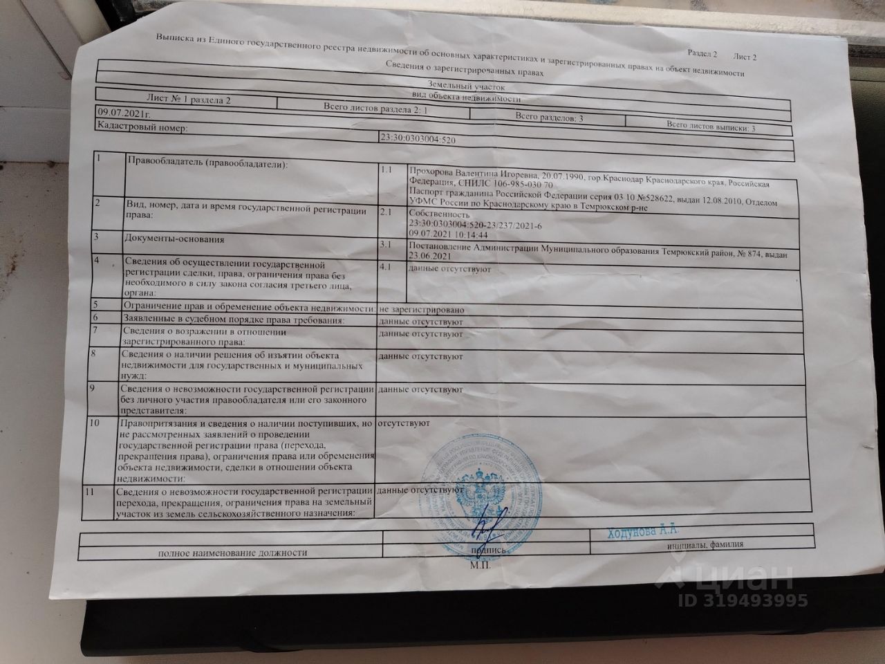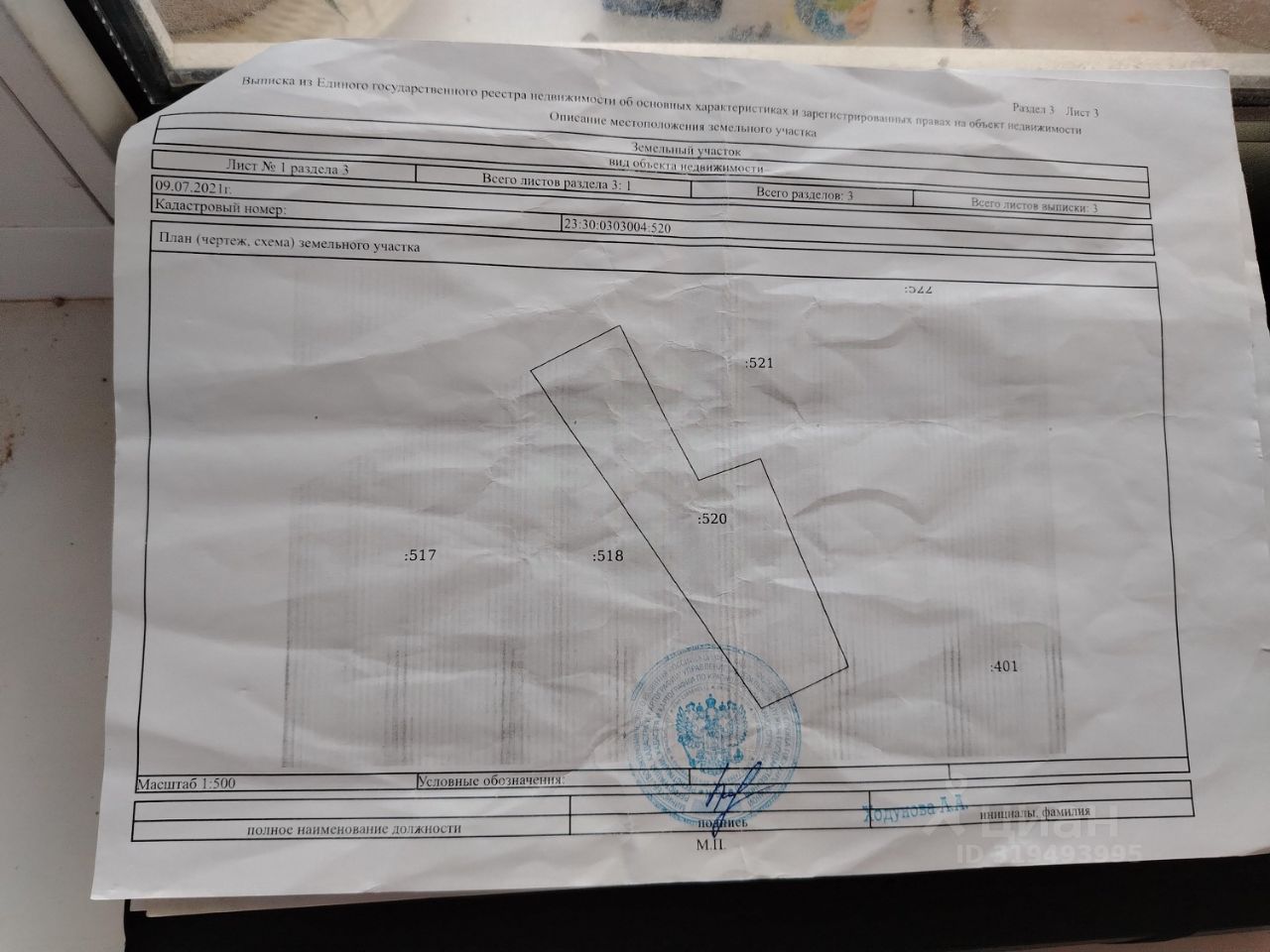 Кадастровый номер участка 23:30:0303004:*** указал продавец