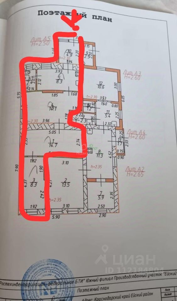 В продаже часть дома на 2-х совладельцев. Дом кирпичный, общая площадь 51.8 кв. м., 3 смежные комнаты, кубанская планировка.