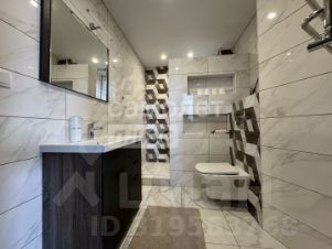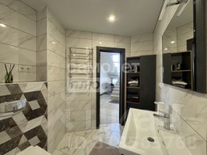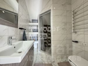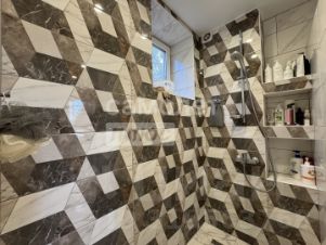 Два сан-узла на первом и втором этаже. С/У стены плитка KERAMA MARAZZI, разделен на две зоны, унитаз и раковина подвесные.