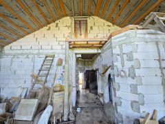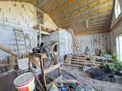 В доме черновая отделка, что позволит вам сделать ремонт по своему вкусу. Шикарная кухня-гостинная 50 кв.м. со вторым светом, что увеличивает пространство, улучшает освещение и создает эффект открытости и свободы. В доме большая капитальная терраса площадью 70 кв.м. На участке есть небольшой гостевой дом, в котором расположены спальня, кухня и санузел.