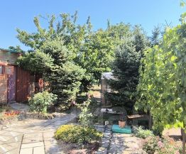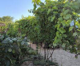 Очень положительная аура - всё растет, всё цветёт. Участок прекрасно ухожен. На участке очень много плодовых деревьев: Черешня 7 видов разного срока созревания. Вишня - шпанка. Абрикосы сортовые разного срока созревания. Яблони 5 видов. Сливы 7 видов сортов. Также кусты малины,  виноградная беседка.