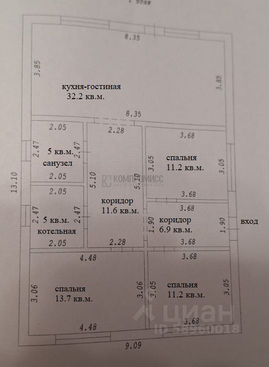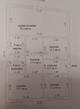 Площадь дома- 97 кв.м., с тремя изолированными жилыми комнатами, кухней- гостинной, просторным санузлом, котельной, коридором.