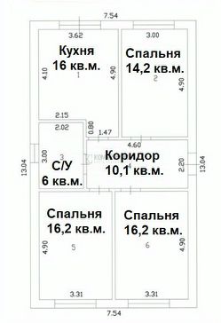 В доме: три изолированные просторные спальни , кухня с выходом на участок, совмещенный санузел, коридор, крыльцо.