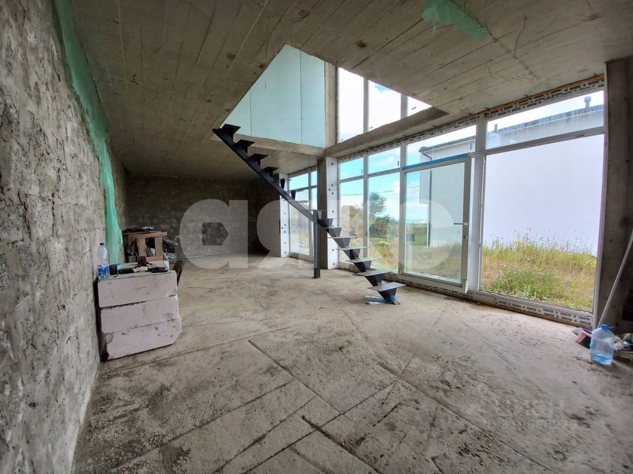 Построен по монолитно-блочной технологии, выполнена гидроизоляция стен и крыши. Установлены двойные стеклопакеты фирмы Rehau. Перегородки стен внутри из гипсокартона , на второй этаж ведет металлическая лестница в стиле "лофт".