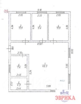 планировка: 3 изолированные спальни, большая кухня-гостиная 46.3 кв.м., совмещенный санузел; из дома 2 выхода;