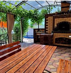 Ухоженный двор с парковочными местами, беседкой и шезлонгами приглашает к отдыху на свежем воздухе. В летний период к вашим услугам бассейн. Мангал и коптильня позволят насладиться блюдами на огне.
