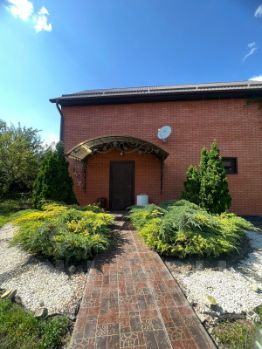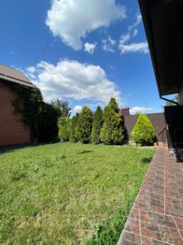 Территория очень большая, ухоженная и облагороженная: во дворе тротуарная плитка, ландшафтные решения с декоративными насаждениями, огорожена кирпичным забором с металлическими коваными ставнями.