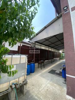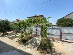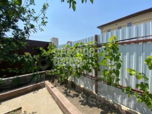 Участок в пять соток окружен забором с откатными воротами и калиткой. Есть дополнительный выход на соседнюю улицу, а также навес для двух-трех машин. Фасад забетонирован.