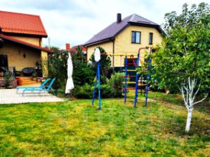 Дом общей площадью 197кв.м с террасой, гаражом, бассейном и баней, на земельном участке 13,5 соток земли.