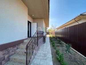 В продаже кирпичный одноэтажный дом 2022 года постройки площадью 145,9 кв.м на участке 6,2 сотки земли . Расположение комнат (планировка в карусели фото): 3 спальни, коридор, совмещенный санузел, котельная, просторная кухня - гостиная с выходом на террасу. Есть подвальное помещение со стеллажами для хранения продуктов питания или других необходимых в хозяйстве вещей. В доме выполнен свежий ремонт, вся мебель и техника остаётся новому собственнику . Вода поступает в дом из центрального водопровода, отопление - индивидуальное от газового котла, канализация - септик.