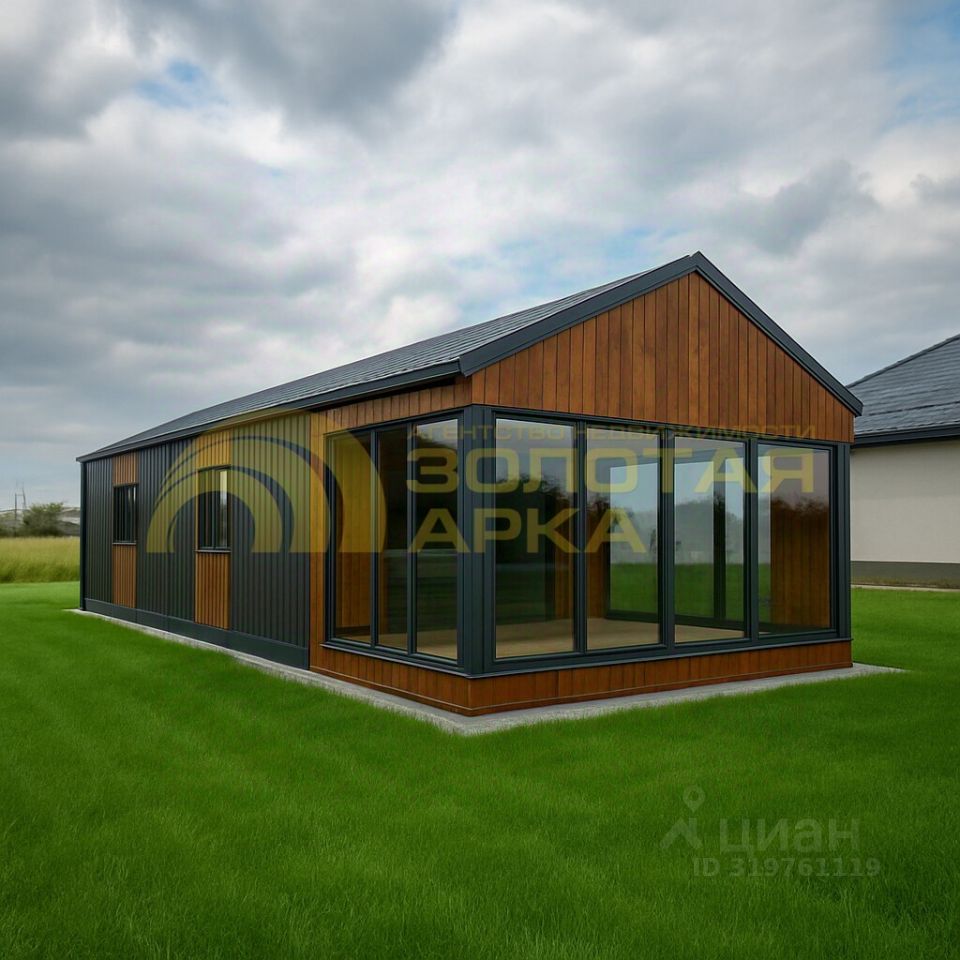 — Площадь дома: 68 м² (2 комнаты, кухня-гостиная, санузел).