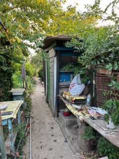 Рядом с домом располагается летняя кухня, соединенная с домом светопропускаемым навесом. Из летней кухни есть выход в небольшую теплицу, можно использовать как зимний сад. В кухне есть кладовая с полками.