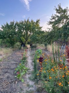 На участке расположен огород с кустами малины, сад с большим количеством плодовых деревьев (слива, яблоня, вишня, черемуха, айва, персик, абрикос), хоздвор для ведения животноводческого хозяйства.
