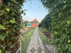 На территории ухоженный сад с плодовыми деревьями и кустами, шикарным цветником, а также зоной отдыха с небольшим бассейном. Для автомобилей предусмотрен гараж и есть место для второй машины как внутри участка, так и перед домом. В гараже есть ремонтная яма. Подключено газовое отопление, водоснабжение осуществляется через скважину, канализация центральная.
