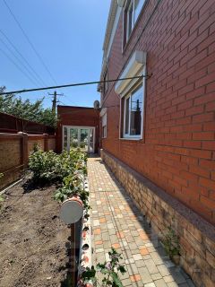 Во дворе тротуарная плитка, навес под несколько машин, несколько входов в дом. Фруктовые деревья есть, место под хранение садового инвентаря тоже есть! Озеленение во дворе имеется!