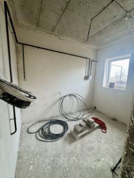 Выполнена качественная электрика, стены оштукатурены.