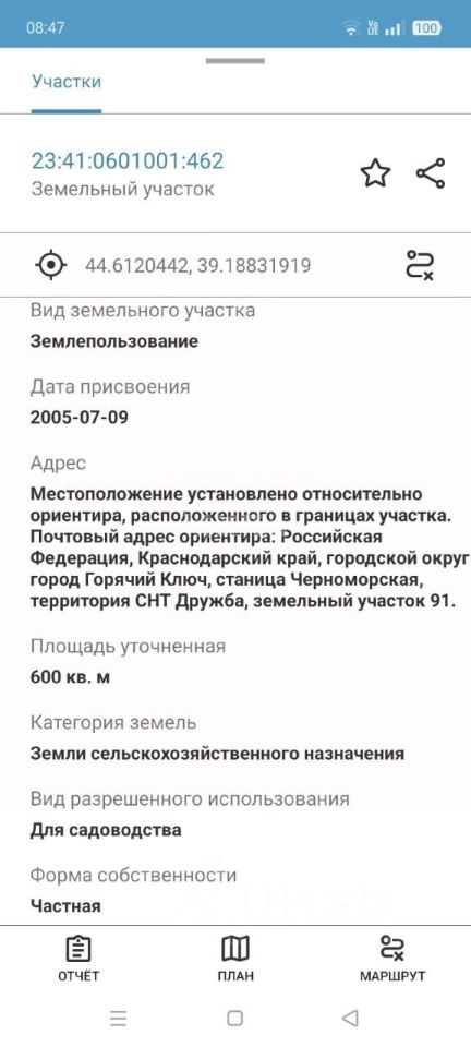 Кадастровый номер участка 23:41:0601001:*** указал продавец