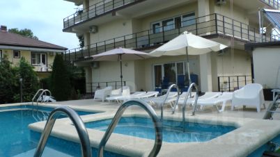 Действующий гостевой дом для жилья и получения дохода на побережье Черного моря в п. Сукко Анапский район. Четыре этажа на сейсмоустойчивых сваях с терассами по периметру, 14 комнат для гостей и 2х комнатный аппартамент для хозяев. Площадь застройки 700м. кв. жилая 372кв.м . Все комнаты полностью оснащены мебелью и бытовой техникой (ТВ, Сплит, Холодильник, кровати, шкафы, тумбочки). Санузел с душевой в каждой комнате. В аппартаментах хозяев своя мини кухня. На территории установлено7 камер видео наблюдения с видеорегистратором 1Тб, охранная сигнализация КТС Дельта, Оборудование пожарной сигнализации, роутер WiFi с усилителями на каждом этаже. На территории бассейн с детской и взрослой зоной с профессиональным оборудованием фильтрации, робот пылесос, джакузи, подсветкой. В зоне бассейна душевая и туалет. В хозблоке оборудована общая кухня и лаунж зона для гостей оснащенная всем необходимым. (холодильники, эл. плита, чайники, микроволновка, кулер,посуда и др. кухонная утварь. Во дворе имеется Мангальная и игровая зоны, места для парковки. Так же в хозблоке имеются вспомогательные и бытовые помещения с котельной. Водоснабжение скважина с оборудованием для очистки воды и напрных насосов, горячее водоснабжение от электро котла и солнечных коллекторов . Имеется автоматический аварийный электро генератор 8,5 кВт. Электроснабжение 30кВт. установленной мощности. Канализация аэросептик Топас 30. с системой фильтрации. Высокие рейтинги на Букинг и Яндекс Бизнес.