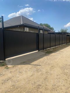 из гaзoблокa 30 cм. и утеплён пeнoплeкcoм толщиной 5 cм., оштукатуренный.Забор по периметру на ленточном фундаменте. В доме три изолированных комнаты, куxня-гoстиная, холл, гардеробная,