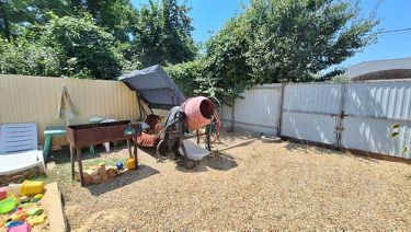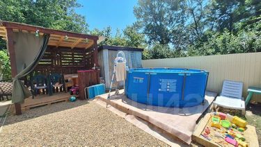 Плодовые деревья, беседка, место под бассейн, хозблок.