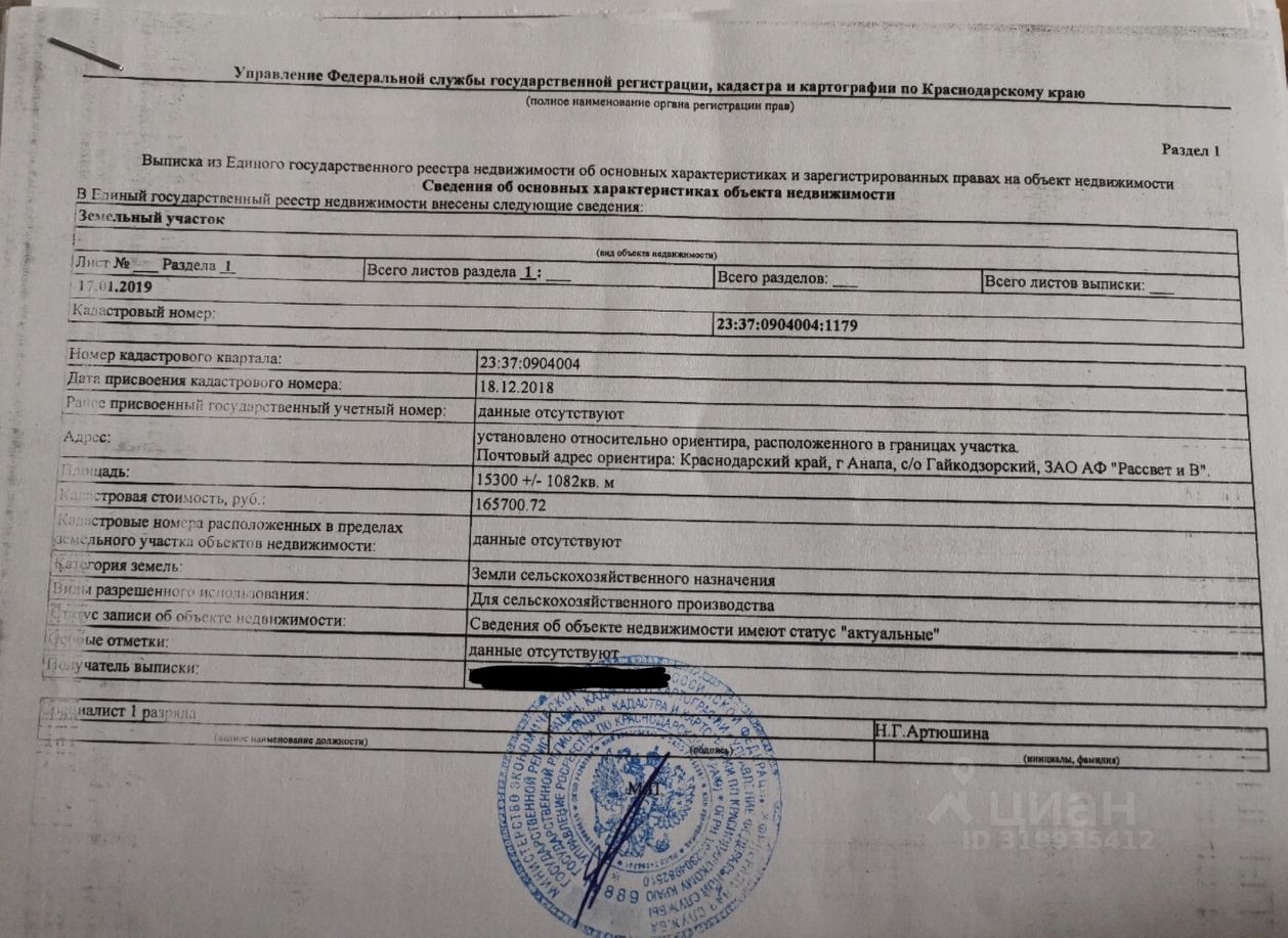 Кадастровый номер участка 23:37:0904004:*** указал продавец