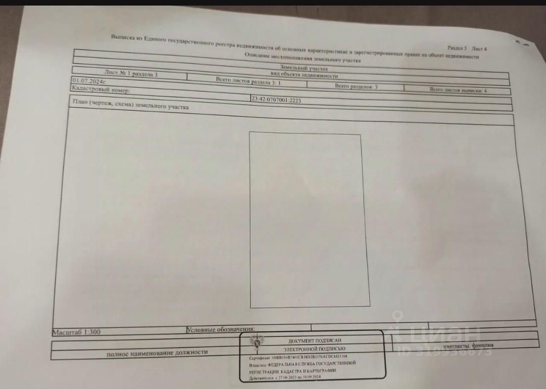 Кадастровый номер участка 23:42:0707001:*** указал продавец