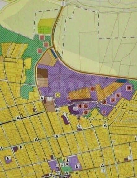 Участок находится в 1,5км от центра. Район жилой. Из коммуникаций свет, по меже газ 70 метров.