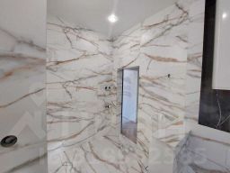 Стены покрыты декоративной штукатуркой, создавая элегантный и функциональный интерьер. В ванной комнате установлена дорогая и качественная сантехника.