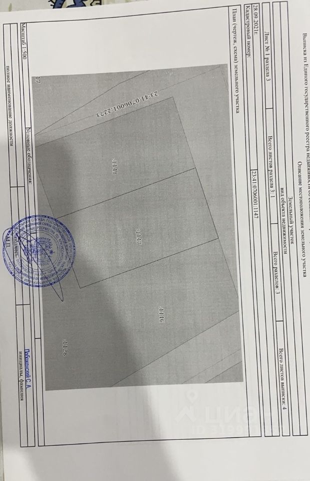 Кадастровый номер участка 23:41:0706001:*** указал продавец