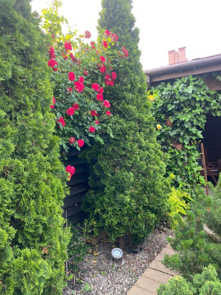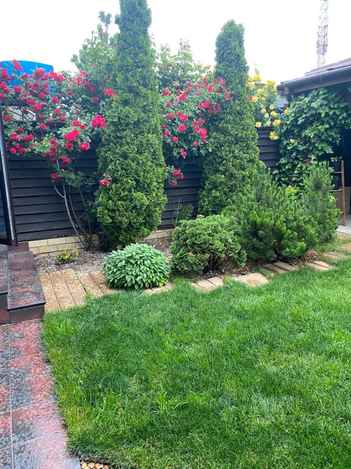 • Ландшафтный дизайн: розы, пихты, газон, декоративные деревья