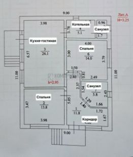 две спальни, кухня-гостиная с выходом на террасу, два санузла, коридор и котельная с постирочной;