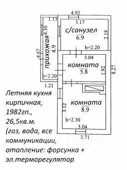 Станица Тбилисская, ул. Базарная, район Большой ВЕСТЫ (въезд с Пролетарской). Жилой дом 1952 г. п., с прочие материалы. Общая площадь 36,9 кв. м. Три комнаты (15,6+8,7+5,6) кв. м, кухня 7 кв. м. Есть МП окна, газ, вода, котёл, все коммуникации. На участке есть кирпичная летняя кухня 1962 г. п., площадью 26,5 кв. м. практически ВТОРОЙ ЖИЛОЙ ДОМ в котором есть две комнаты (8,9+5,8) кв. м, совмещённый санузел - 6,9 кв. м. и прихожая - 4,9. А так же газ, вода, эл. бойлер, все коммуникации. Отапливается форсункой, в ванной установлен эл. терморегулятор. Есть небольшие капитальные хозпостройки, подвал, молодой ПЛОДОНОСЯЩИЙ САД, виноград. Двор бетон, навес. Фасад - 17.80 м. Земельный участок 1300 кв. м. под ЛПХ. Есть место для строительства.