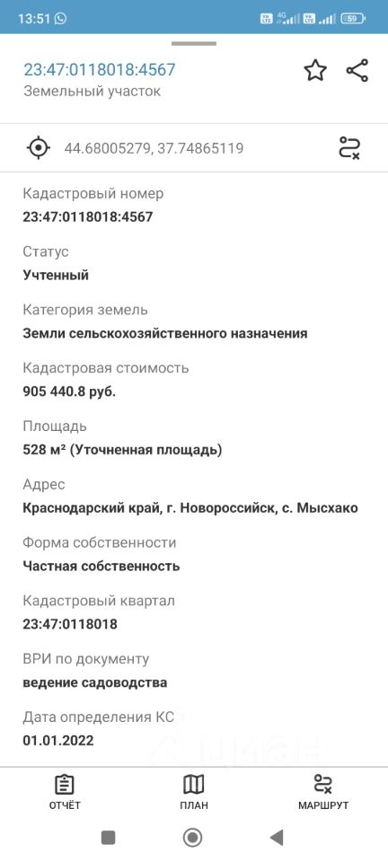 Кадастровой номер 23:47:0118018:4567 Собственник.