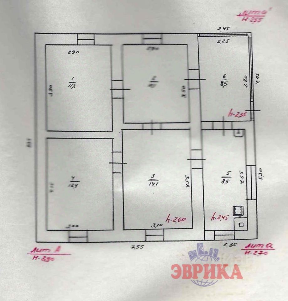 планировка: 7 комнат, кухня, совмещенный санузел;