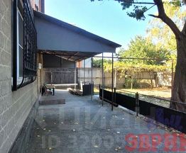 Двор забетонирован и выложен плиткой, укрыт капитальным навесом, огорожен забором.