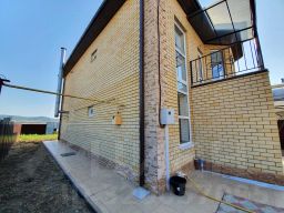 Полностью благоустроен. Дворовая территория, отмостки по периметру домовладения вымощены тротуарной плиткой. Спереди дома смонтирован навес под авто, обшитый израильским поликарбонатом.