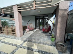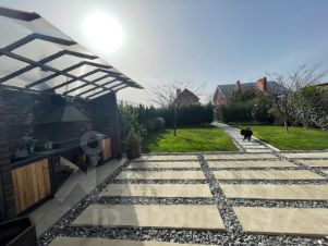 Двор с грамотным зонированием территории электрические ворота, домофон, видеонаблюдение, парковка на 2 машины, терраса 25 кв. м., зона барбекю, зона сада с ландшафтным дизайном, площадка для отдыха (бассейн, лежаки), спортивная зона (турник, брусья), 2 хоз постройки, вольер для собаки, уличный с/у, скважина для полива и технических нужд.